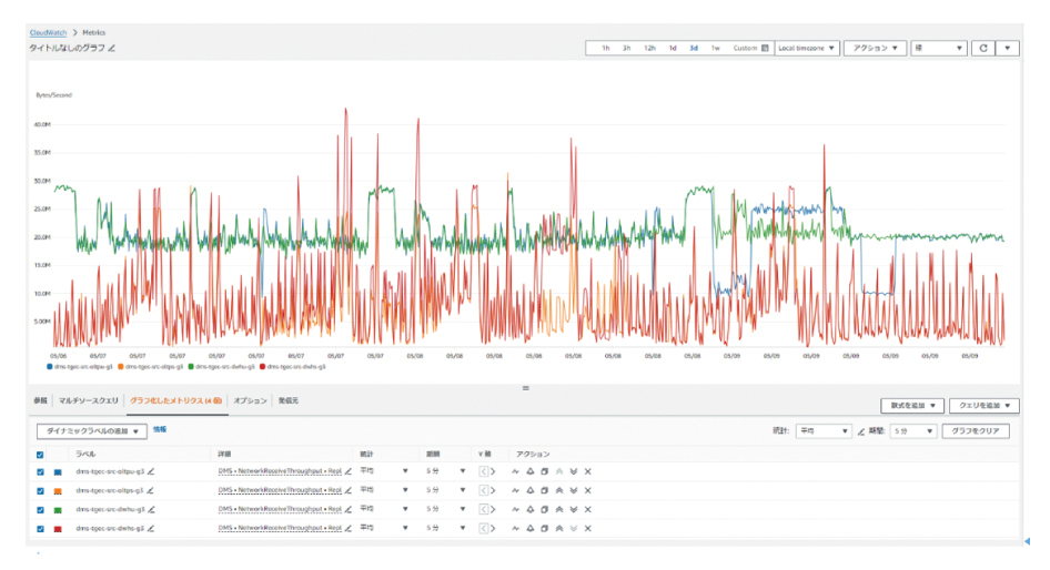 塙氏 また、DMSによるレプリケーションでは通信品質とセキュリティの観点から専用線を利用する必要がありましたが、どの程度の帯域が必要か、サービスに影響が出ないかを事前に把握することが重要でした。ネットワーク設計時には、Exadata→DMS→RDS間のトラフィック量を検証いただき、トラフィックが多いレプリケーションタスクでは240Mbpsの帯域が必要であることが判明しました。