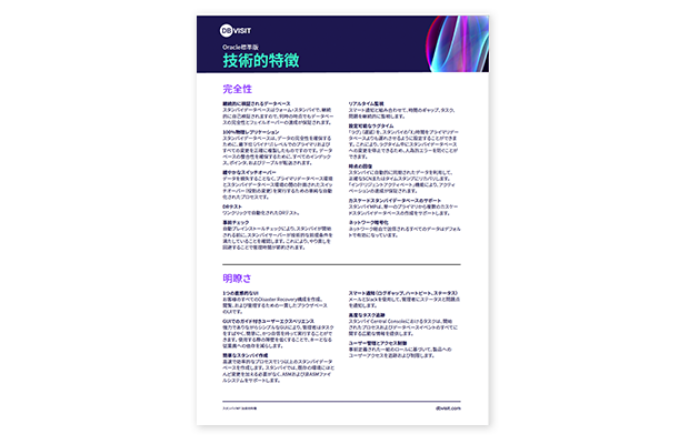 Dbvisit StandbyMP (Oracle)Dbvisit StandbyMPの技術的特徴 Oracle Databaseへ対応したDbvisit StandbyMPの技術的な特徴をご紹介します。StandbyMPの機能について詳しく知りたい方は、このカタログをダウンロードしてください。 Oracle Databaseへ対応したDbvisit StandbyMPの技術的な特徴をご紹介します。StandbyMPの機能について詳しく知りたい方は、本カタログをダウンロードしてください。 関連製品 share