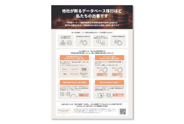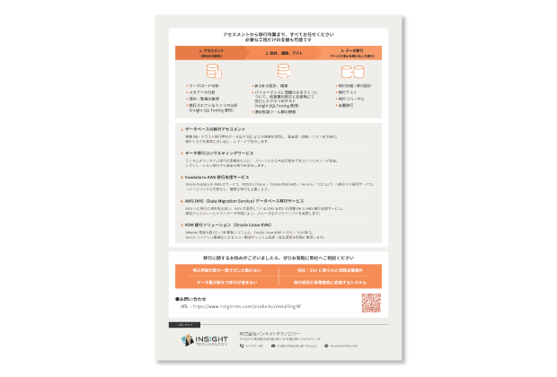 Insight Consulting 大容量データ × 超短時間停止の高難易度移行案件に対応|DB移行支援サービス 本資料では、多くのSIerが対応困難とする大容量・超短時間の停止で実現するデータベース移行に特化したコンサルティングサービスをご紹介します。サービスの特長や支援内容を詳しく知りたい方は、本資料をダウンロードしてください。 本資料では、多くのSIerが対応困難とする大容量データ・超短時間の停止で実現するデータベース移行に特化したコンサルティングサービスをご紹介。四半世紀にわたる知見とお客様の環境に応じた最適な移行プロセスにより、ミッションクリティカルなシステム移行を成功へ導くための特長や支援内容を具体的に解説します。詳細を知りたい方は、本資料をダウンロードしてください。 関連製品 share
