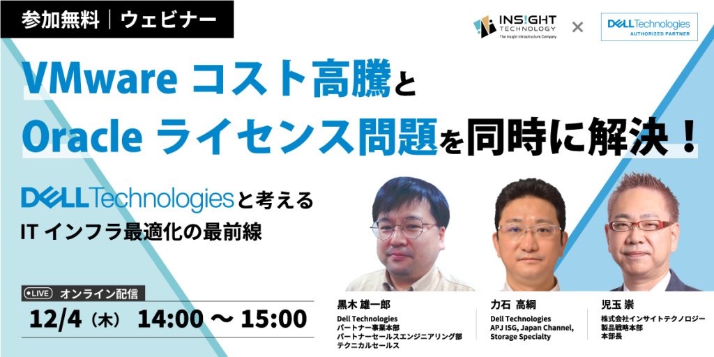 Dell Technologies社とインサイトテクノロジーは、これらの課題を解決し、仮想環境のコストと運用リスクを劇的に削減するための共同セミナーを開催します 。