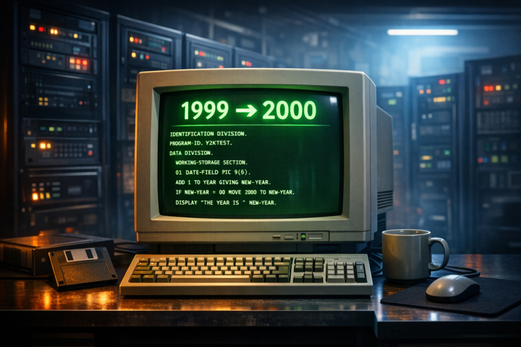 今では信じられないのですが、多くのシステムでは、メモリやストレージの節約のために1998年⇒98、1999年⇒99、といったように西暦を下2桁で管理していました。