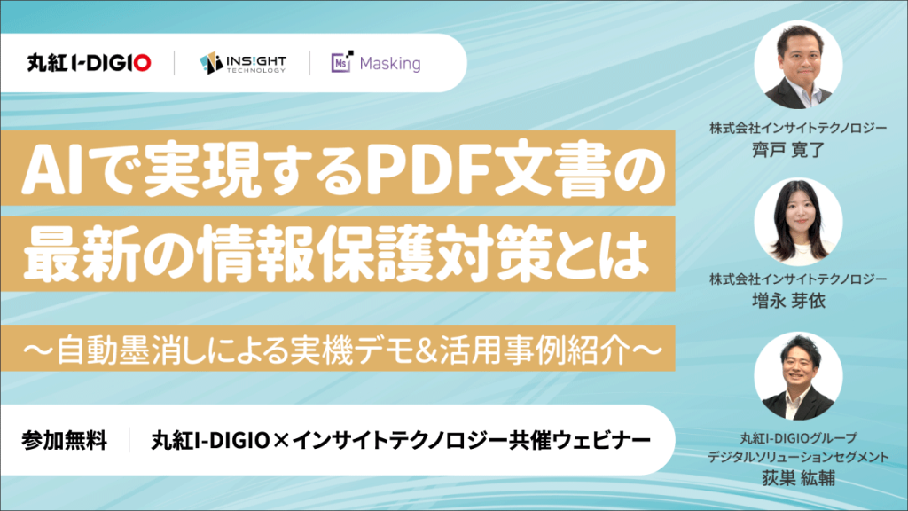 本ウェビナーでは、AI技術を活用した自動墨消しソリューション「Insight Masking 墨消しEdition」を活用し